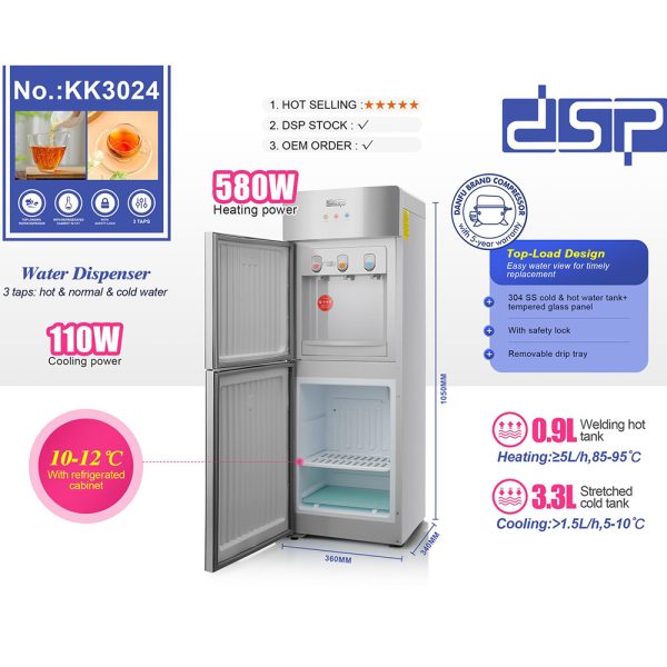 ម៉ាស៊ីនចម្រោះទឹកក្ដៅ ទឹកត្រជាក់ DSP Water Dispensers 580W 3.3L&0.9L KK3024